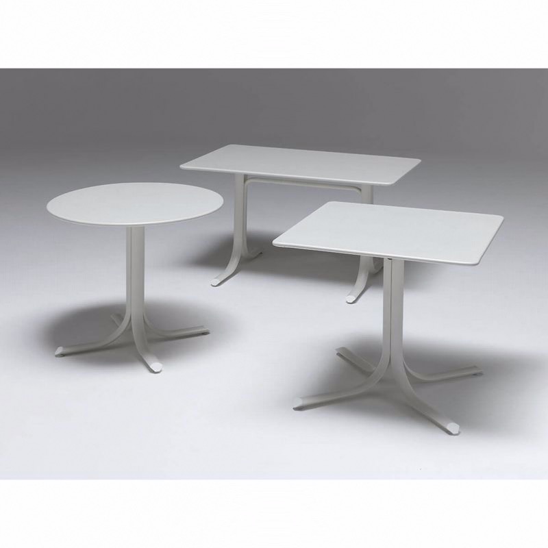 Résistante et facile d'entretien, la table System résiste aux intempéries et peut être utilisée à l'extérieur.